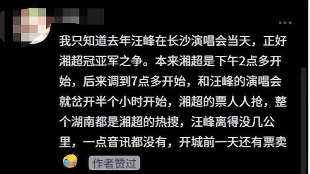 更何况,2025年湘超半决赛,刚好那天晚上汪峰在长沙开演唱会,湘超的票人人抢。