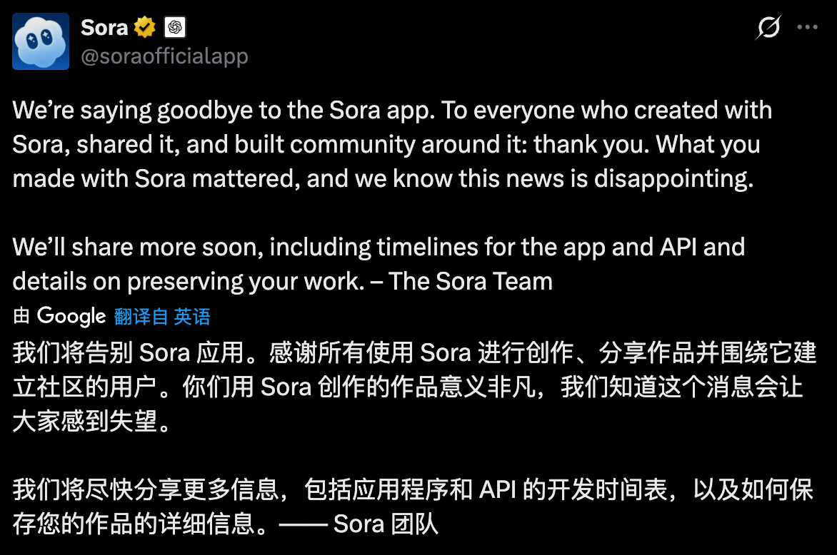 在算力成本极其高昂的今天,单纯的技术惊艳已经不足以支撑一款产品的存活。没有清晰的商业模式、无法解决版权争议、且偏离公司核心战略的产品,即使头顶“OpenAI”的光环,也难逃被优化的命运。